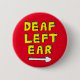 En underbar sak till bära för dem som är döv i sitt lämnat öra. På brickan syns ditt lämnat öra när det bärs, så att andra vet att inte prata med dig på den sidan. Ofta när man har en ensidig dövhet, kan andra tänka man är oartig för att de tänka man ignorerar dem! Med den här badkarnålen får de veta att de bara är i fel ställe, och du ignorerar dem inte, du hör dem helt enkelt inte! Ändra bakgrunden till färg och storleka av märket till kostym till din personlighet. Den här produkten bör hjälpa till att göra livet lite enklare för dem som är svårhörda.