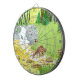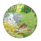 En darttavla med en vacker skogsscen med dov och kalv som dricker från en bäck nära en vattenfall. Originalkonst av W.B.