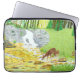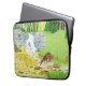 En bärbar datorskärm med en vacker skogsscen med dov och kalv som dricker från en bäck nära en vattenfall. Originalkonst av W.B.