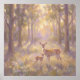 Denne skogsmålning fångar ett ömt moment mellan en dovhjort och hennes kid som står tyst i en solbelyst skogsklarning.