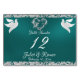 Den här romantiska designen har en elegant teal bakgrund med glitter gräns, hjärta och duvor med ställe för bordsnumret, parets namn och händelsens datum. Finns i flera färg för temat bröllop. (Glitter simuleras i teckningen). Designat att samordna med "två ska bli en - Dovar, hjärta och Glitter"-samlingen i Bröllop. Om du vill ändra information klickar du på "Anpassa". Om du vill flytta texten eller ändra texten storlekt, teckensnitt eller färg klickar du på "Klicka för att anpassa ytterligare".