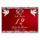 Den här romantiska designen har en elegant som har en röd bakgrund med glitter gräns, hjärta och duvor med ställe för bordsnumret, parets namn och händelsens datum. Finns i flera färg för temat bröllop. (Glitter simuleras i teckningen). Designat att samordna med "två ska bli en - Dovar, hjärta och Glitter"-samlingen i Bröllop. Om du vill ändra information klickar du på "Anpassa". Om du vill flytta texten eller ändra texten storlekt, teckensnitt eller färg klickar du på "Klicka för att anpassa ytterligare".