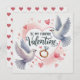 Fira kärlek med detta vackert designade kort som innehåller två grumliga duvor, ett mousserande par av ringar som är kapslat i ett hjärta och omgivet av en ömtålig andedräkt av blommigt. Den hjärtliga texten "Be min evighet Valentine" gör det till ett idealiskt val för Alla hjärtans dag, årsdagar eller en romantisk frieri.