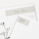 Chic och elegant bröllop-omslutningsadressetikett, med ett par namn i en contemporary av svartaktigt typsnitt mot grått-bakgrunden. Det här objektet ingår i en bröllop-svit som innehåller inbjudningar och som är stationär i en mängd olika neutralter och matchande artiklar. .