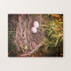 Det här pusslet har ett foto av ett fempunktsbo i ett cedar träd med sina två ägg.