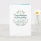 A card with a doves and flowers motif "Congratulations on your Wedding" on the front, blank inside with a solid light blue background color, folded.