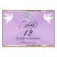 This romantic design features an elegant lavender pearl background trimmed with thin gold ribbon, linked hearts & doves with a place for the table number, couple's names and date of event. Available in several colors for your wedding theme. (Ribbon is simulated in the artwork). Designed to coordinate with the "Two Shall Become One - Silver & Gold" Wedding Collection. To change details, click «Personalize». To move the text or change the text size, font, or color click «Click to customize further».