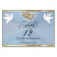 This romantic design features an elegant blue pearl background trimmed with thin gold ribbon, linked hearts & doves with a place for the table number, couple's names and date of event. Available in several colors for your wedding theme. (Ribbon is simulated in the artwork). Designed to coordinate with the "Two Shall Become One - Silver & Gold" Wedding Collection. To change details, click «Personalize». To move the text or change the text size, font, or color click «Click to customize further».