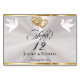 This romantic design features an elegant white pearl background trimmed with thin gold ribbon, linked hearts & doves with a place for the table number, couple's names and date of event. Available in several colors for your wedding theme. (Ribbon is simulated in the artwork). Designed to coordinate with the "Two Shall Become One - Silver & Gold" Wedding Collection. To change details, click «Personalize». To move the text or change the text size, font, or color click «Click to customize further».