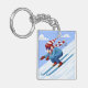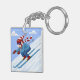 En skidåkare i nedkanten hoppar över backarna. Den här designen ser ut att vara effektiv i den här nyckelkedjan