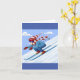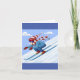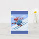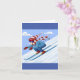 En skidåkare i nedkanten hoppar över backarna. Den här designen ser ut att vara effektiv på det här hälsningskortet