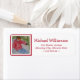 Den fantastiska adressetikett du kan anpassa - för dina bästa vänner, familj, födelsedagar, studenten eller för dig själv! Nedförsbackskidåkare i ett rött jacka, blå jeans och orange glasögon tävla nedströms skidåkaren backe - har målats i vattenfärger av designern.