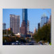 Längst ner i Austin, Texas, från Sydkongressen Avenue på en vacker solnysdag, inzoomad med byggnaden huvudstad i sikte, mitt i det andra torn