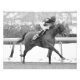 Vintern tävla på det historiska Aqutecht Racetrack, hem för de prestigefyllda Wood Memorial-insatserna. Jockey Kendrick Carmouche har kontroll över fullt eftersom han med sin mäktiga buskkolt dr Burt.Black och vita enfärgade bild av vinnande häst och ryttare. Fleetbild