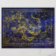 Den vackra digitala konsten har dussintals celestial konstellation illustration, inklusive framstående Draco, i guld på nattblå stjärnbakgrund i himlar. Samma bild på båda sidor