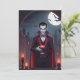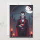 Sänk dina tänder i Halloweenandan med vår gratulationskort ”Draculas förtjusning”! Designen visar en karismatisk Dracula, iklädd sin signatursvarta kappa och skarpa kostym, stående framför ett gotiskt slott under fullmåne. Med ett slugt leende och glödande röda ögon inbjuder Dracula dig att vara med och festa på de spökiga festligheterna.