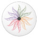 Färga fjädrar. Tolv fjädrar i fyra färg (tre i grönt, orange, rött och lila) gått med i mitten med en svart punkt.