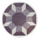 Mönster i lila och vit "spool" som släcker mönster. Åtta spolar roterar runt ett centrum för mörkens lila. En lila blomma är "tråd" på spolen och ram för varje block.