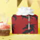 Dragon silhouette omslaget runt svärdet på röd bakgrund