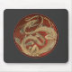 Den dramatiska vintagens fantasi i Art nouveau stil har en drake på mörk röd i en cirkel med svart bakgrund och röda accenter