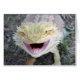 En lycklig-skäggig drake tittar upp med ett stort öppet leende.