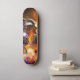 En mycket unik designad skateboard. Skateboard har en brandandningsdrake som flyger i en stjärnkväll himlar.