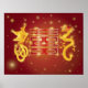 Kinesiska drakons- och fenixsymboler för mytiska djur i unionen med Dubbla från Calligraphy Writing Happiness på en Auspicious Festive Sparkly Illustration Teckning Poster