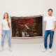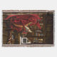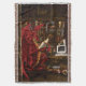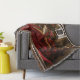 Röd drake sitta i sin dator den som läste en bok. Omkring honom är många skatter från hela hans äventyr.
