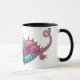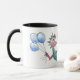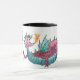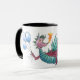 Ett vitt mugg med svart fälg och handtag och en lila och grönt dra från en vattenfärgsmålning av Judy Adamson. Matchande gratulationskort finns också tillgängliga.
