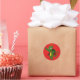 Klassisk rund fästare med illustration av en grönt toppen-hjälte drake i rött spelande, fantasi design för barn