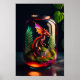 Den magiska poster-utskriften har en terarium av glas med en liten dragon placerad mellan naturens inslag. Digitalkonsmålning skapat med AI-genererande software.