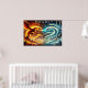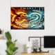 I denna episka fantasiscen, brinner och isar ansikte i en dramatisk konfrontation. Branddraken, skalor som ser ut som molten lava, dominerar det rökande himmel, omgivet av vridande flammor. Istången, som skakas i blå och vita nyanser, växer från ett fruset, kristallint landskap och utstrålar en isig dimma. Bakgrunden är en slående kontrast till elände och isig struktur. Texten "BRRE & ICE" visas överst