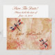Den här Dragonfly Spara Datumet har vattenfärgsdragonflikter på en vintages bakgrund med blomning och snurrande design.