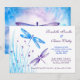 Dragonfly Bröllopsinbjudningar som är anpassade. Anpassa den vackra blåa och lila violetta bröllopsinbjudan med drakflugor och elegant- och blombakgrund.