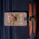 Fotografi av en drakfluga, med en färgstark, rustisk bakgrund av lila och grönt.