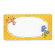 Den här etiketten innehåller en färgstark tecknad drakfluga och ett gäng blåa blommor på en gult poktabakgrund. Klicka på knappen Anpassa om du vill lägga till en egen text. Kan användas som en etikett, kanningsetikett, bokplåtsetikett, fraktetikett, presentetikett, märkre, partiförmån med mera.