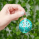 Fantastisk metallisk dragonfik som flyger runt ett vackert glansigt träd i en turkossfär.