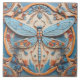 Dragonfly i dekorativ blå och gyllene Gult Kakelplatta