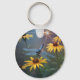 Den här nyckelkedjan har en blå drakfluga som vilar på en svart ögonad Susan.