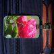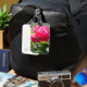 Dragonfly sitta på röd ros-blomman bagagebricka