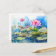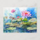 Dragonfly som flyger genom rosa vatten lilies helg vykort