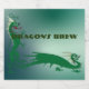 Två visuella grönt-drakar anpassade från vintage Art nouveau-illustrationer med texten Dragons Brew och gröntens bakgrund.