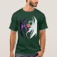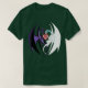 En lila drake och en vit drake i luft med keltisk rosa och rött hjärta mellan dem i blå bakgrund