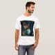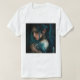 This white t-shirt features a stunning, artistic graphic of a dark-haired woman with a dramatic, fantasy-style look. She is looking back over her shoulder at the viewer. A striking teal-blue dragon tattoo is visible on her shoulder and upper back. The image has a moody, dark aesthetic with deep blue and teal tones, making the woman's pale skin and red lips stand out. It's a bold and captivating design for anyone who loves fantasy art, dragons, or edgy style.