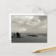 Postkort med svart-vit fotografering som visar pojkar som flyger en långstjärtad drake på en strand. Jag tog det här fotot på Sanur-stranden på Bali.