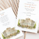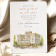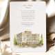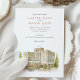 Inbjudan dina gäster till ett verkligt minnesvärt tillfälle med den här sofistikerade bröllopsinbjudan med vattenfärg, med den ikoniska Drake Hotel i Chicago. Konsten fångar på ett vackert sätt den stora klassiska arkitekturen hos detta berömda landmärke, som är känt för dess elegant kalkstensfasad (krämer och färgader) och utpräglade rödbruna eller terracotta övre sektioner, stolt flygande amerikanska flaggor. I en mjuk, förfinad vattenfärg stil är hotellet glatt inramat av stiliserat träd med grönt och gulaktig grönt löv, vilket ger stadsmiljöns storhet en aning naturlig mjukhet. Den här inbjudan är en tidlös Chicagoelegans och är perfekt för en klassisk, sofistikerad stad bröllop. På den eleganta sidan i presenter får du information om bröllop, medan den omvända sidan innehåller informationen "Finer Details" (Finer-information) för gästinformation. I paletten färg ingår statliga krämer, slag, varm rödaktig rödaktig , olika nyanser av grönt och gulaktig grönt för lövet samt mjuka atmosfäriska toner.