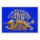 Visas en vietnamesisk drake i ett stativ av bambu i guld mot en blåttbakgrund.