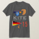 Drake som surfar - T-tröja för segling för standert för GER Tysklandflagga. Kitesurfer som surfar vågar och fullständigt anpassadetexten "drake", "surfa - GER" med numrerar 15, och den tyska flaggastanderten och "Port Richman", text på för vapensköldden nautiska tysklanda flagga "för seglingen som" och initialer "P" och "R" kitesurfing den nautiska utslagsplatsen.