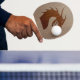 Drakehuvudet som inristas på trä, verkställer pingisracket
