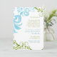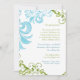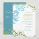 FÄRGPALETT: akvablå, medel himmelblå, mintgrön, smaragdgrön. DESIGNKOLLEKTION: Matchande "Save the Date"-kort, Förlovningskort. Denna bröllopsinbjudan skapades från originalvattenfärgillustrationer av Audrey Jeanne Roberts. Ömtåliga och moderna samtida blad-swirlar och rullande mönster i blått och grönt dansar runt inbjudan tillsammans med ett par vackert detaljerade trollsländor. Det finns ett elegant, handkalligraferat teckensnitt med Ampersand med brudens och brudgummens namn och bröllopsdatum på framsidan. Baksidan har de handmålade swirlarna som blommar ut runt din inbjudantext. Detta är en dubbelsidig bröllopsinbjudan.